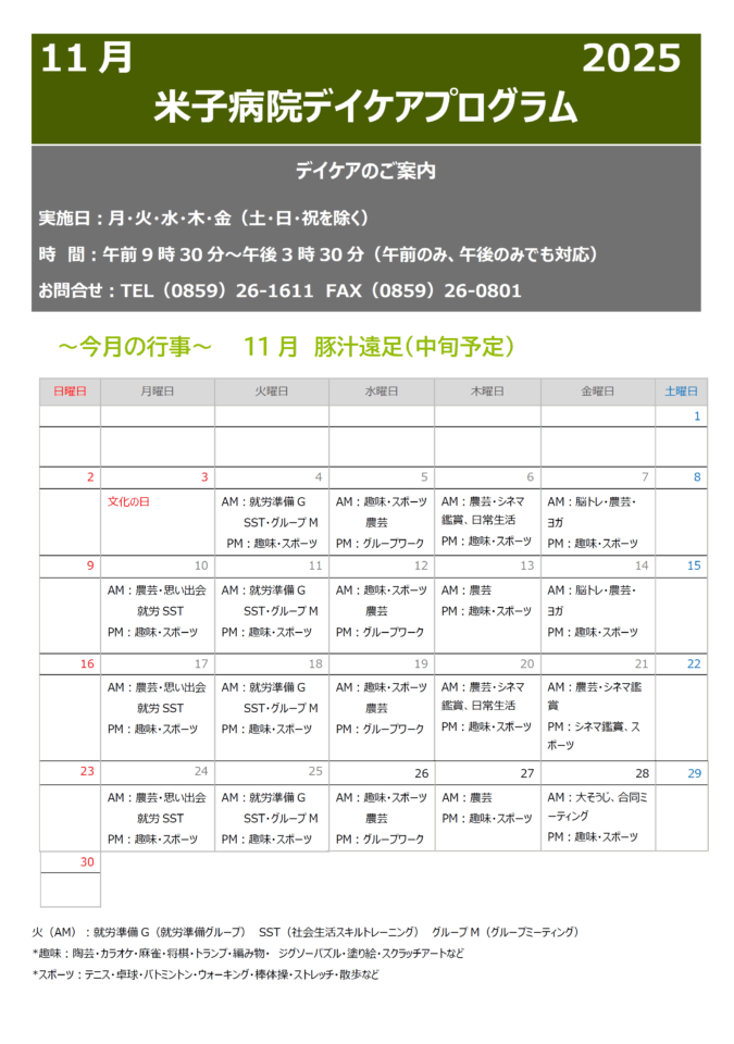 3. 2025年度11月 デイケアプログラム&行事予定表